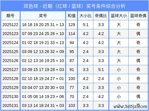 双色球第2025131期开奖号码:红球03、13、14、18、24、31;蓝球03。红球号码大小比为3:3,奇偶比为3:3,蓝球开寥落数、少许。